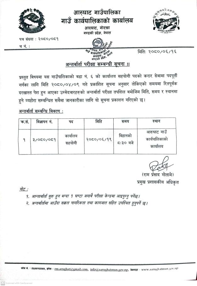 अन्तर्वार्ता परीक्षा सम्बन्धी सूचना !!