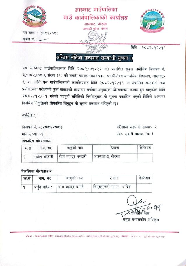 अन्तिम नतिजा प्रकाशन सम्बन्धी सूचना !!