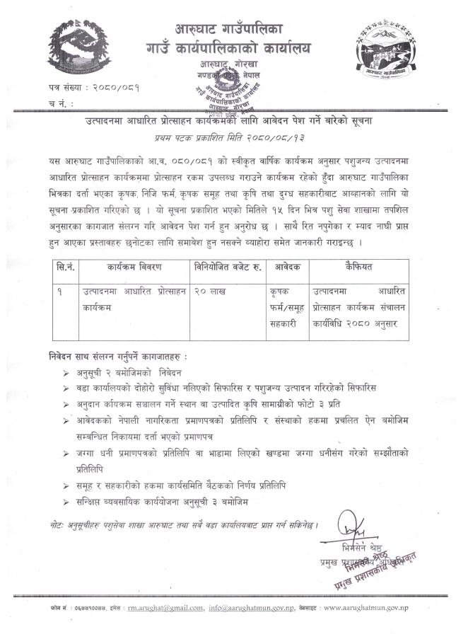 » उत्पादनमा आधारित प्रोत्साहन कार्यक्रमको लागि आवेदन पेश गर्ने बारे सूचना !!