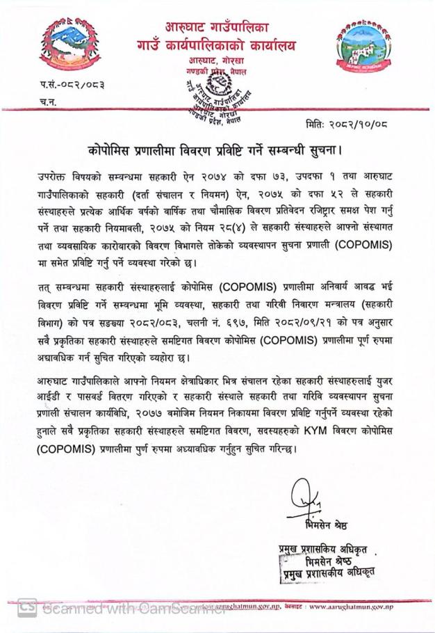 » कोपोमिस प्रणालीमा विवरण प्रविष्टि गर्ने सम्बन्धी सुचना ।