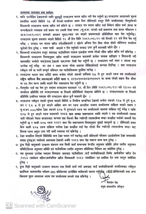 नदीजन्य पदार्थको बिक्री शूल्क उठाउने सम्बन्धी शिलबन्दी दरभाउपत्र आव्हानको सूचना !!