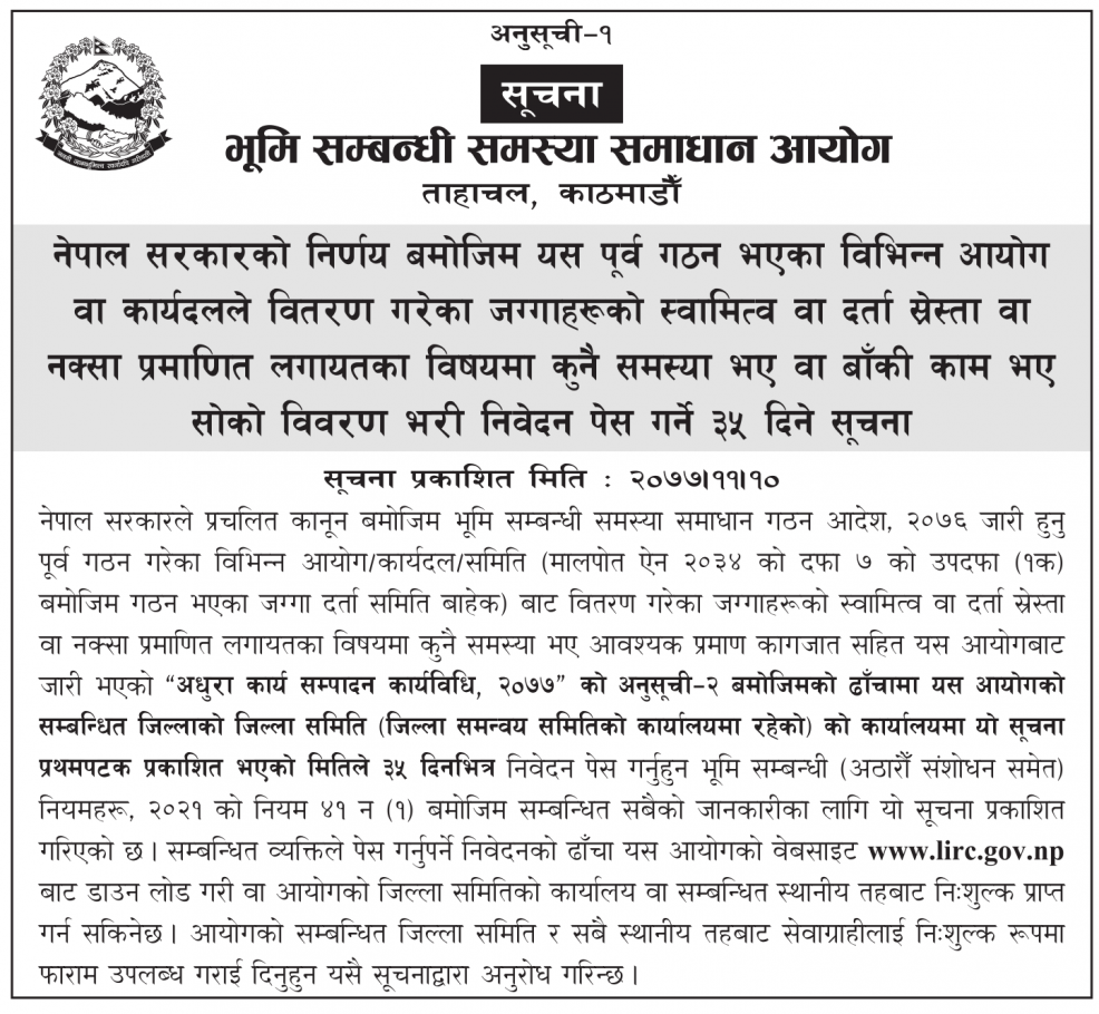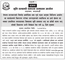 भूमि सम्बन्धी समस्या समाधान आयोगद्वारा जारी सूचना !!