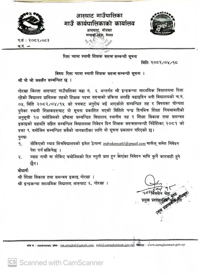 » रिक्त पदमा स्थायी शिक्षक सरुवा सम्बन्धी सूचना