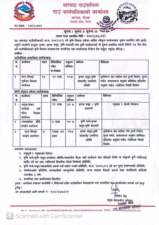 आरुघाट गाउँपालिकाको आ.व. २०८१/०८२ को वार्षिक विकास कार्यक्रम