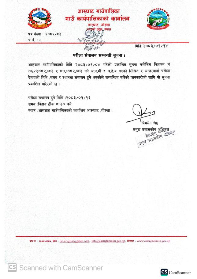 परीक्षा संचालन सम्बन्धी सूचना ।