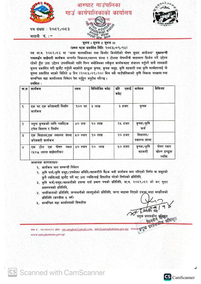 आरुघाट गाउँपालिकाको आ.व. २०८१/०८२ को वार्षिक विकास कार्यक्रम