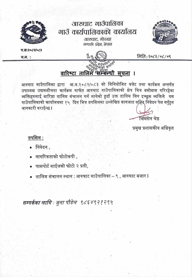 Home » बिभिन्न तालिम सम्बन्धी सूचना ।