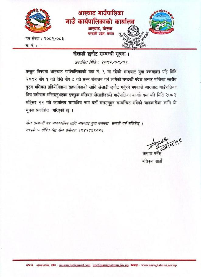 Home » खेलाडी छनौट सम्बन्धी सूचना !
