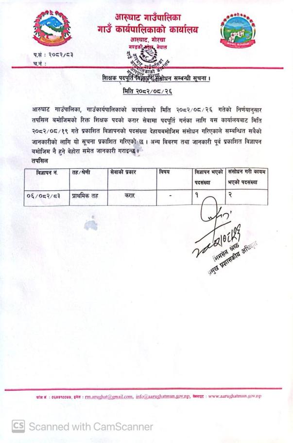 अस्थायी करारमा नियुक्तिका लागि सम्पर्क राख आउने सम्बन्धी सूचना